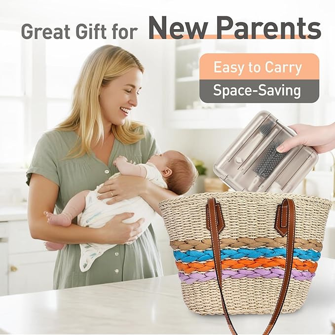 - 【Portable Bottle Brush Cleaner Set】 Compact organizer (7.87"x7.48"x1.81") fits easily in diaper bags - ideal for airplane travel, camping with baby, or family visits. A must-have in your baby travel essentials.