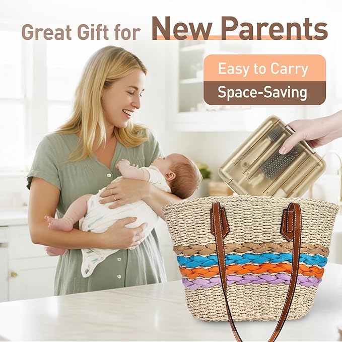 - 【Portable Bottle Brush Cleaner Set】 Compact organizer (7.87"x7.48"x1.81") fits easily in diaper bags - ideal for airplane travel, camping with baby, or family visits. A must-have in your baby travel essentials.