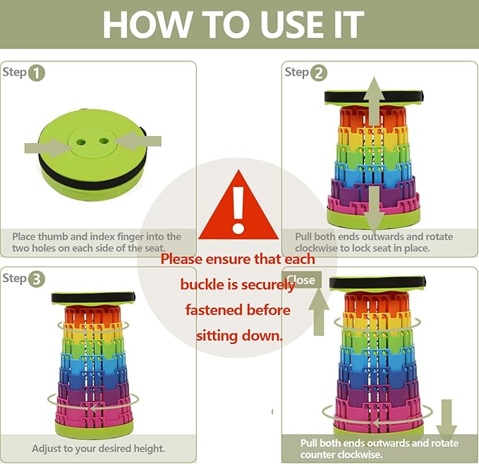 - 【PREVENT SELF-OPENING】When the folding stool is stowed away, the snap designed on the stool cap will work to prevent the stool from opening on its own. The non-slip base ensures the stability of this foldable stool, providing you with a safe and comfortable sitting position.