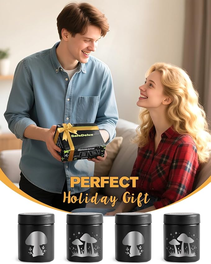 Airtight Smell Proof Jar 4oz, Viewing Window Jars Design with UV Protection Glass, Keeps Spices & Tea Fresh, Portable Travel Storage, Durable Airtight Glass Jar for Everyday Use