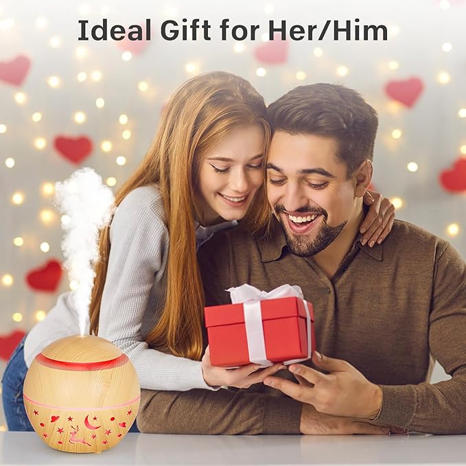 - 【Ideal Gifts for Her】Small aroma diffuser doubles as a humidifier, air aromatherapy machine, night light, and features an elegant wood grain design that complements any home decor style. It is the perfect gift or office bedroom home decor for girls mom friends and your lover for Christmas, Thanksgiving, New Year's Day, birthday