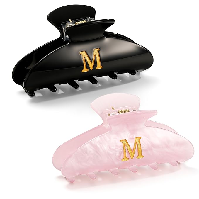 - High-quality: You will receive 2 pcs claw clips, black and pink hair clips can be used in different occasions, with personalized letters on both sides of each clip, showcasing your personality and making you unique. They have a smooth surface but non-slip, they can secure grip and hold your nice hair tightly, and won't fall off easily and do no damage to your hair. Hair claw clips made of high quality acrylic material, haven't unpleasant odor