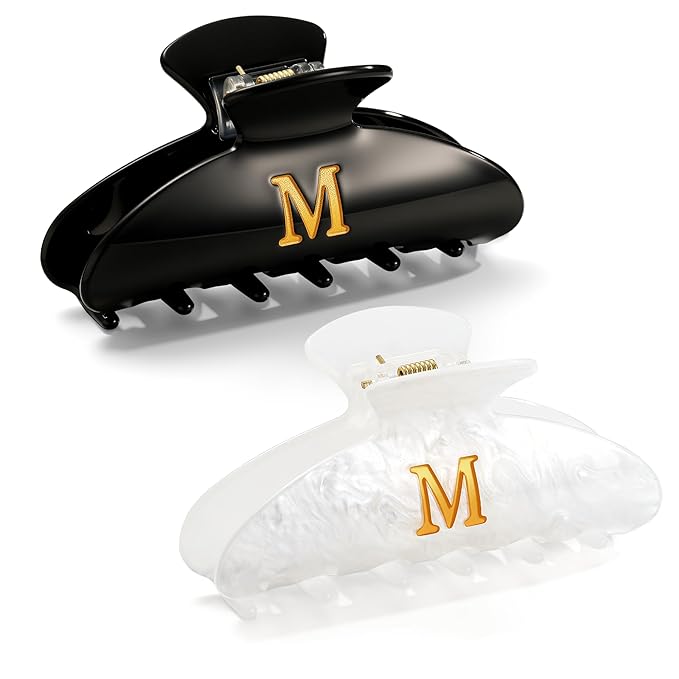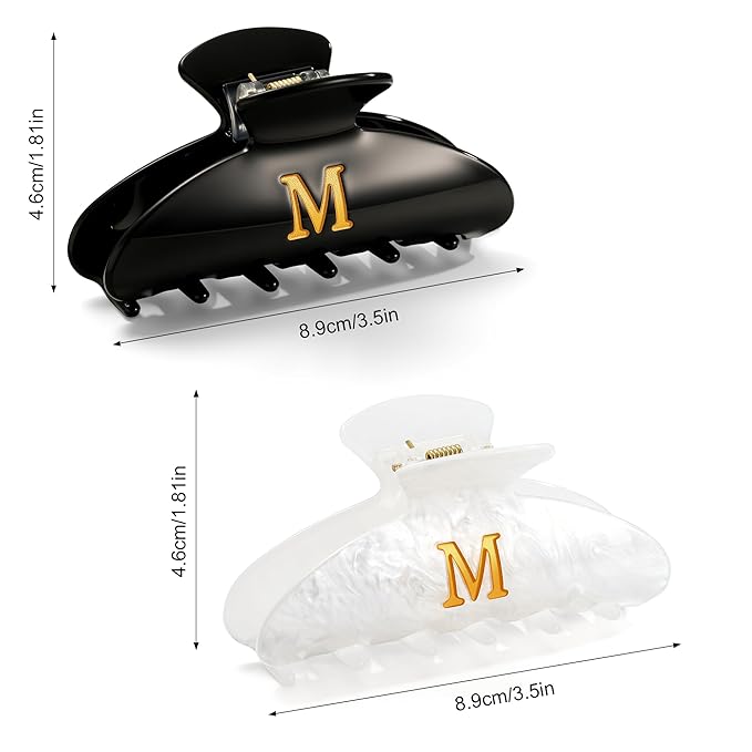 - High-quality: You will receive 2 pcs claw clips, black and white hair clips can be used in different occasions, with personalized letters on both sides of each clip, showcasing your personality and making you unique. They have a smooth surface but non-slip, they can secure grip and hold your nice hair tightly, and won't fall off easily and do no damage to your hair. Hair claw clips made of high quality acrylic material, haven't unpleasant odor
