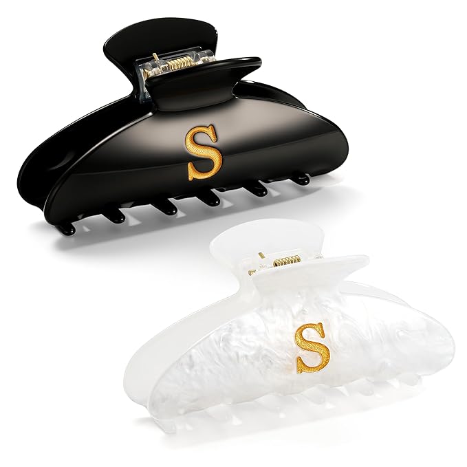 - High-quality: You will receive 2 pcs claw clips, black and white hair clips can be used in different occasions, with personalized letters on both sides of each clip, showcasing your personality and making you unique. They have a smooth surface but non-slip, they can secure grip and hold your nice hair tightly, and won't fall off easily and do no damage to your hair. Hair claw clips made of high quality acrylic material, haven't unpleasant odor