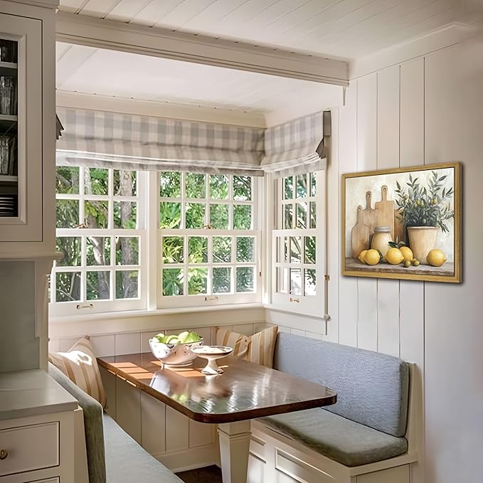 - 【Vintage Lemon Fruit Wall Art】Add a splash of freshness to your space with this beautifully designed vintage lemon wall art. Featuring bright yellow lemons intertwined with delicate green leaves and natural botanical elements, this artwork evokes the charm of a rustic country kitchen. It’s a perfect way to bring the feeling of sunny orchards and warm summer days into your home, making any space feel more cheerful and lively.
