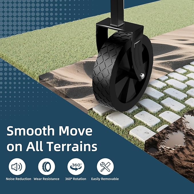- ALL - TERRAIN WHEELS - Equipped with two front 360° rotating wheels, this wagon can glide smoothly over various terrains like pavement, grass, and sand. The wheels are also detachable, facilitating storage and maintenance.
