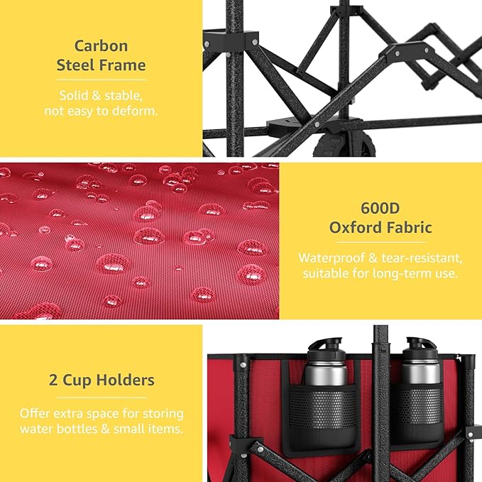 - Premium Frame & Fabric Durability: Engineered with a heavy-duty 1.2mm steel frame and double-layered 600D Oxford fabric, this wagon offers rugged reliability for long-term outdoor use-built to withstand the toughest conditions