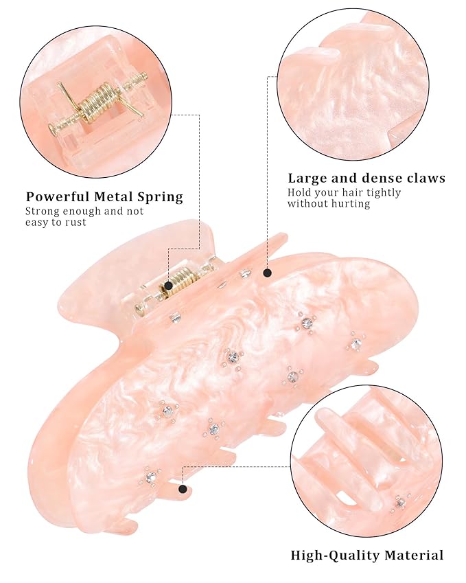 - 【ELEVATE UR LOOK】We’ve got 3 types of claw clips,translucent spotted, marble and glitter.What's more important is that each hair clip has undergone strict quality testing to ensure safe use and no harm to hair.Choosing our hair clips means choosing different confidence and beauty. Let our handmade hair clips accompany you through every beautiful moment