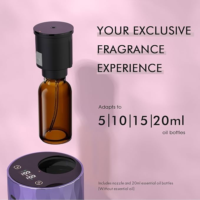 - Special Feature : ① Waterless Patented Technology, ② 2 Modes: Home/Car, ③ ≤25 db Low Noise, ④ 96 Hours Runtime, ⑤ Up to 600 Square Feet, ⑥ 5/10/15/20ml Essential Oil Bottle Compatible, ⑦ Cordless and Compact Size ① Waterless Patented Technology, ② 2 Modes: Home/Car, ③ ≤25 db Low Noise, ④ 96 Hours Runtime, ⑤ Up to 600 Square Feet, ⑥ 5/10/15/20ml Essential Oil Bottle Comp… See more
