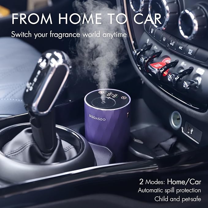 - Stylish, Portable Design – Your go-to portable essential oil diffuser: Crafted from premium aluminum, this cylindrical waterless diffuser fits most car cup holders and complements any decor. Cordless and compatible with 5-20ml oils, it’s the ultimate portable essential oil diffuser for home, office, or travel. Backed by DOQASOO’s 3-year warranty and expert support for peace of mind.