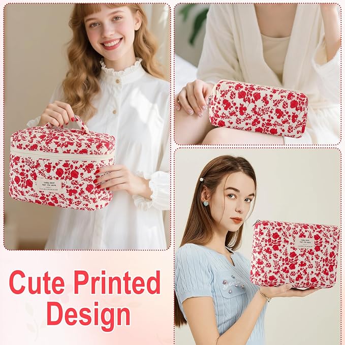 - PERFECT GIFT: The cotton quilted makeup bag is an ideal choice for travel, vacation, school, camping, bathroom organization, and other outdoor activities, is also very suitable as a present for your friends, family or someone else you like. This flip cosmetic bag is the best trendy birthday gift for women and your family