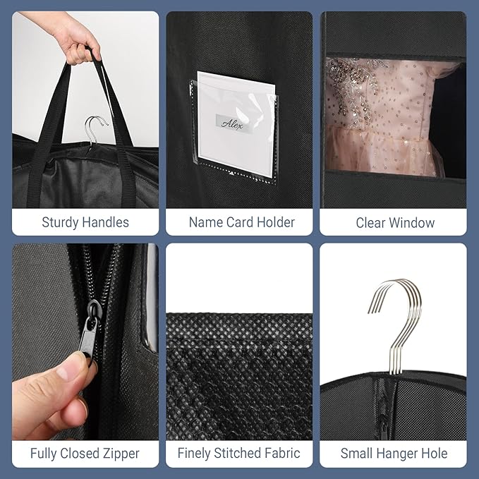 - Premium material: These long dress garment bag are made of breathable non-woven fabric, ideal for protecting any clothing type stored in your wardrobe. They offer effective dust resistance and moisture protection, providing excellent protection for your garments.