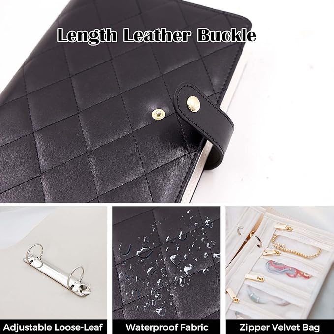 - 【5-Layer Adjustable Storage with Secure Metal Rings】 Master clutter-free packing with 2 large-mesh, 2 medium-mesh, and 1 XL-mesh pages, all secured by metal binder rings. Designed for jewelry organizers and storage travel, it stores earrings, rings, necklaces, bracelets, and watches without tangling—ideal for 2-3 day trips!