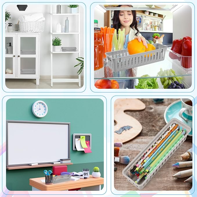 - Sufficient Quantity: you will get 12 pieces of of plastic storage baskets that meet most of your organizing needs, designed to fit tight spaces in drawers, cabinets, and shelves, them the ideal organizer for those narrow spaces
