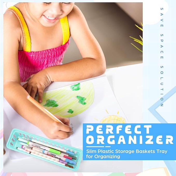 - Product Size: each classroom storage tray is about 10 x 3 x 2.5 inches/ 25.5 x 7.5 x 6 cm, which can be applied for desktop storage of office documents, magazines, stationery, cosmetics, and so on, makes them the ideal organizer for those narrow spaces that are hard to utilize