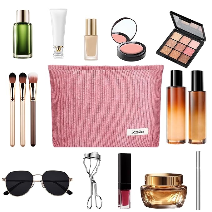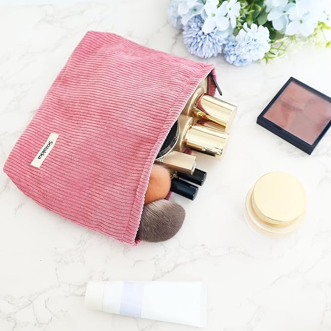 - MULTI-PURPOSE: The corduroy makeup bag can be used as a toiletry bag or storage bag. Daily makeup products, skin care samples, mobile phone can be put in the cute cosmetic bag, and can also be used as a purse. The cosmetic bag organizer makeup bag can be used while traveling, since the portable toiletry tote bags are lightweight and don't take up a lot of space in your suitcase. You get a small pouch in this set too, perfect for stashing in your backpack
