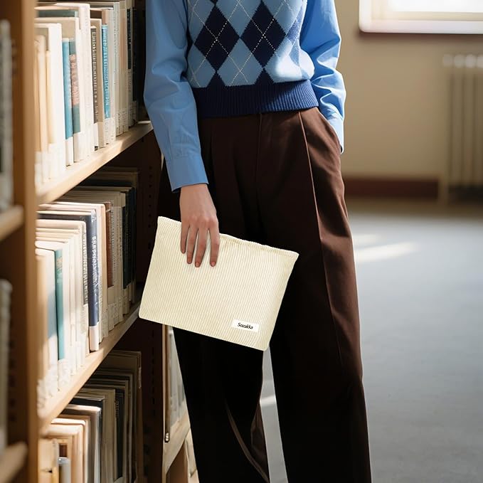 - LIGHTWEIGHT AND WELL-MADE: The corduroy makeup bag is made of premium soft corduroy and is comfortable, soft and lightweight. Travel cosmetic bags for women fold up when not in use and fits in a large bag without taking up space. The metal zipper of kawaii makeup bag pull keep your items secure and organized inside
