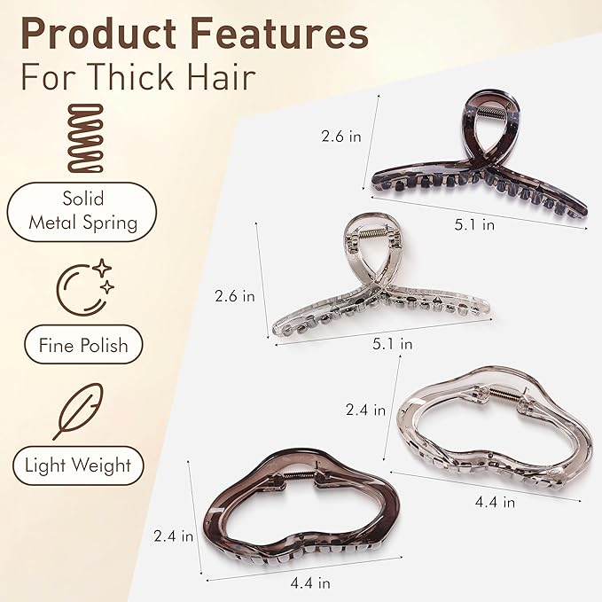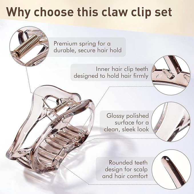 - Multi-Color: The hair claw clip set is available in two classic and versatile colors, designed to complement any outfit and occasion. The soft glossy finish in dark brown and light brown blends seamlessly with all hair shades, making it easy to achieve a natural and polished look. Packaged in a neat and compact box, these clips are easy to carry