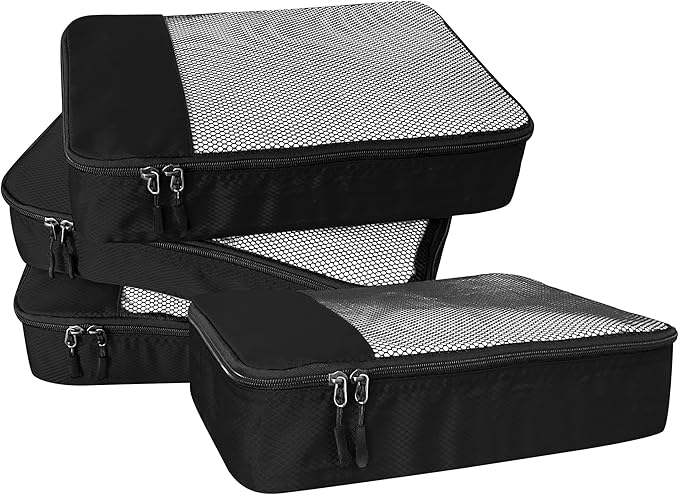 4-Piece Packing Cubes Travel Accessories Set for Suitcases - Luggage Organizer Bags with Double Zipper - Mesh Top - Medium - Black