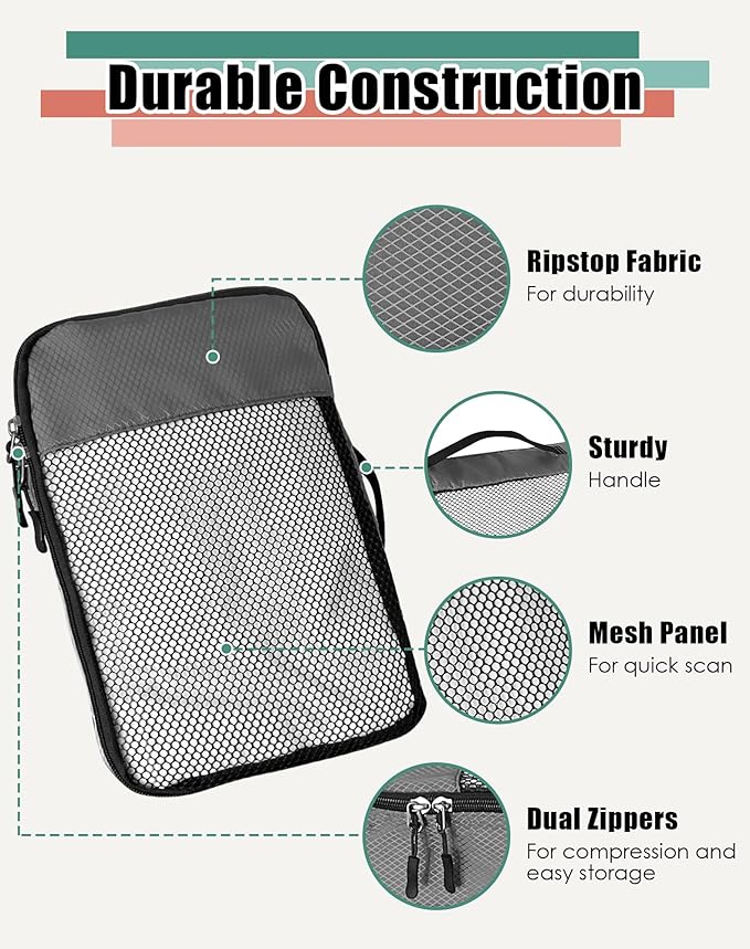 - Built to Last with Premium Durability: Crafted with high-quality, lightweight fabric, reinforced double zipper pulls, and sturdy interior seams, these packing cubes are designed for frequent travelers. They keep your belongings secure without adding unnecessary weight.