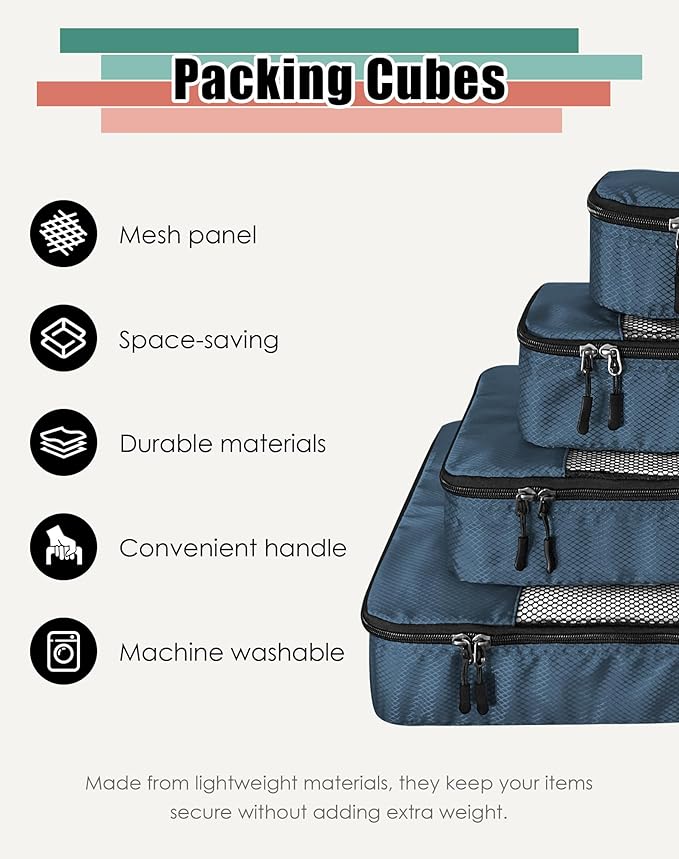 - Built to Last with Premium Durability: Crafted with high-quality, lightweight fabric, reinforced double zipper pulls, and sturdy interior seams, these packing cubes are designed for frequent travelers. They keep your belongings secure without adding unnecessary weight.