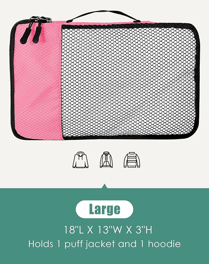 4-Piece Packing Cubes Travel Accessories Set for Suitcases - Luggage Organizer Bags with Double Zipper - Mesh Top - Large - Pink