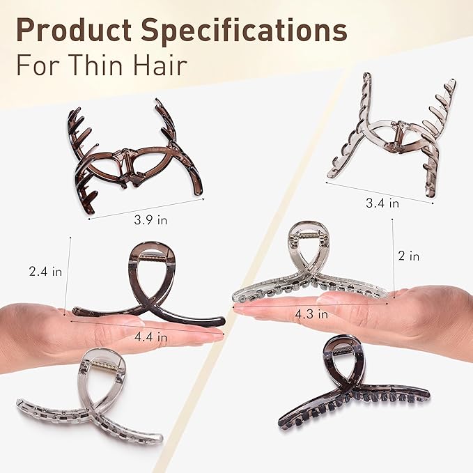 - Product Specification: This package includes four high-quality hair clips in the same stylish design, featuring two different types and two elegant colors. The variety allows you to mix and match with different outfits while ensuring you have the perfect clip for various hairstyles. The ample quantity makes it easy to keep one in your bag, at home, or at work, and they are also great for sharing with family and friends