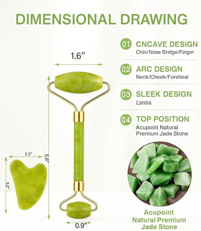- TRADITIONAL TOOLS: Set includes both a Gua Sha scraping tool and a dual-ended jade roller for complete skincare routines