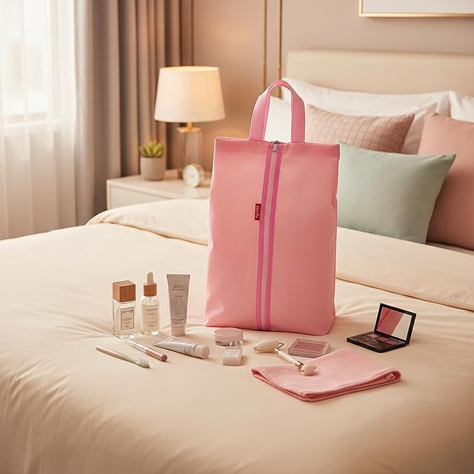 6pcs Portable Shoe Organizer, Travel Pouches with Zipper, Golf Shoe Bags, Clothes Bags, Soccer Cleats Bag Shoe Pouch for Gym, Waterproof, Odor-Resistant (Pink)