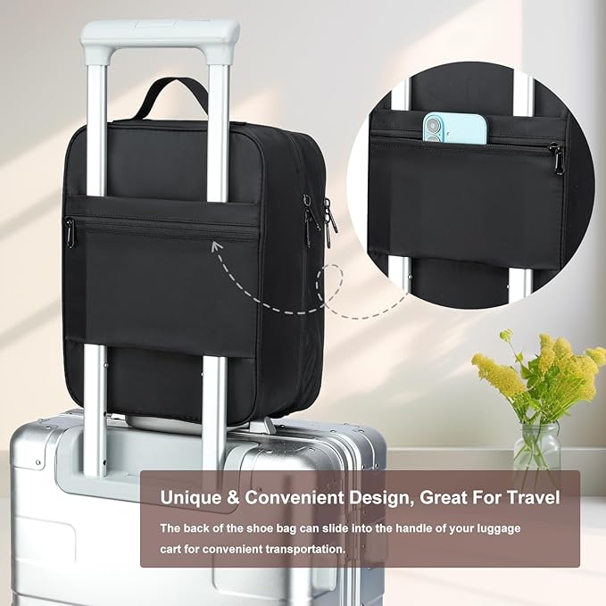- 【Uniqe-design Details】travel shoe bag is designed with lots of unqie details, including a carrying handle, double zipper for easy-open, breathable mesh panels to keep shoe clean, phone pocket keeps your essential device secure and instantly accessible while you're on the move.