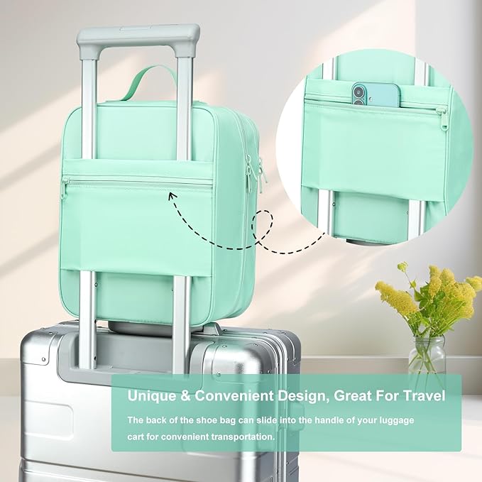- 【Uniqe-design Details】travel shoe bag is designed with lots of unqie details, including a carrying handle, double zipper for easy-open, breathable mesh panels to keep shoe clean, phone pocket keeps your essential device secure and instantly accessible while you're on the move.