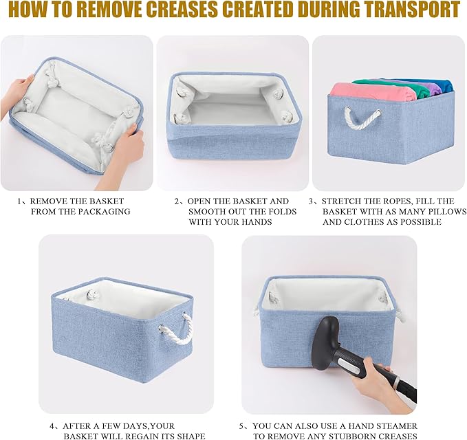 - RESISTANT MATERIAL: Made from resistant sturdy linen, and thickened EVA. The sturdy metal rod frame at the top keeps the shape of the basket. Resistant linen make this basket long-term storage
