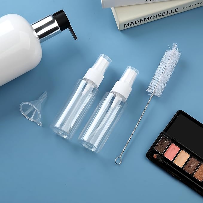 - Useful Travel Accessories: This is a oversize assortment of travel containers in a useful zip case. ( Come in 2 pcs Larege 6oz & 2pcs 3oz Travel Bottles + 4 Travel Jar s+ 2 Spray Bottles + 2 Scoopers + 1 Funnel + 1 Clean Brush + 1 Page Label + 1 Clear Toiletry Bag ) Multiple ones allow you take along different beauty products and toiletries according to your requirement