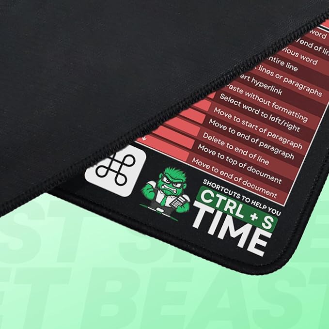 - [ELEVATE YOUR SET-UP] - Designed for function and style, this mouse pad features high-resolution shortcut keys, a smooth surface for precise mouse control, durable stitched edges, and a non-slip rubber base that keeps your desk setup looking clean and working hard.