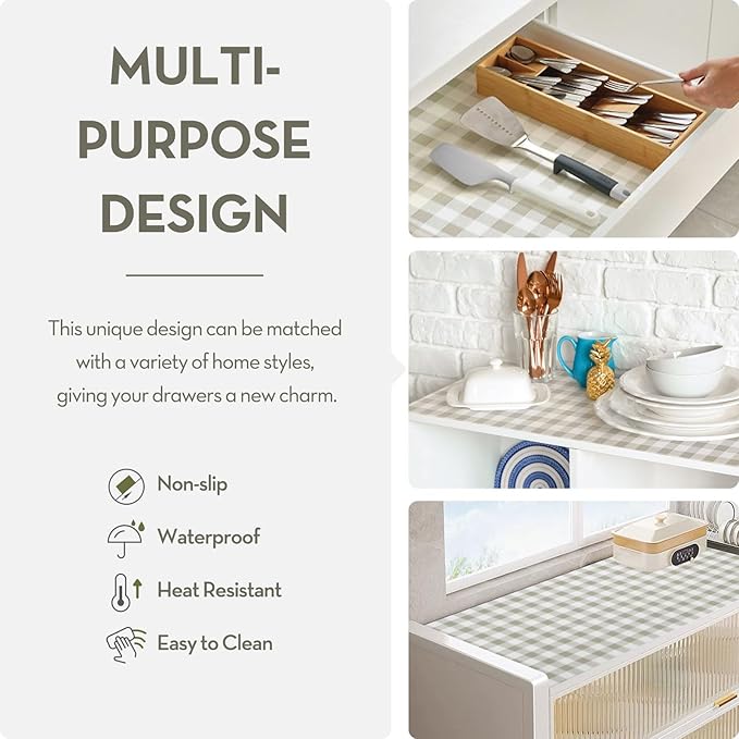 - 【Waterproof and Easy to Clean】Drawer Liner: The shelf liners we provide offer exceptional water and oil resistance, effectively safeguarding furniture against unsightly stains. They are effortlessly wipeable, ensuring that shelves and cabinets remain consistently clean and dry