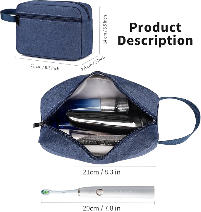 Travel Toiletry Bag, Small Cosmetic Bag, Hanging Water-Resistant Organizer for Men & Women, Ideal for Makeup, Shaving Kit, Gym Essentials & Travel Accessories (Blue)