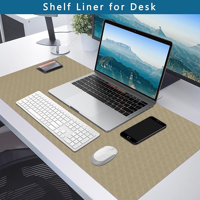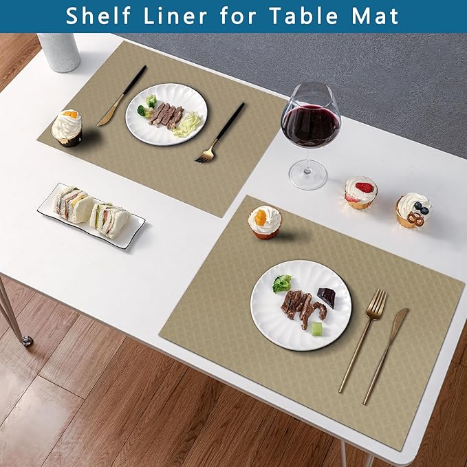 HooTown Kitchen Shelf Liner Drawer Liners, 17.5"W x 78.7"L Non-Adhesive Cabinet Cupboard Liners Refrigerator Waterproof Fridge Mat with Durable Kitchen Cabinet Mat for Drawers, Shelves, Pantry, Khaki