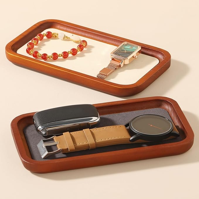 - ELEGANT DESIGN: Rounded rectangular style bracelet and necklace tray with the whole body is thickened with wood and microfiber finish covering for sophisticated jewelry display and storage