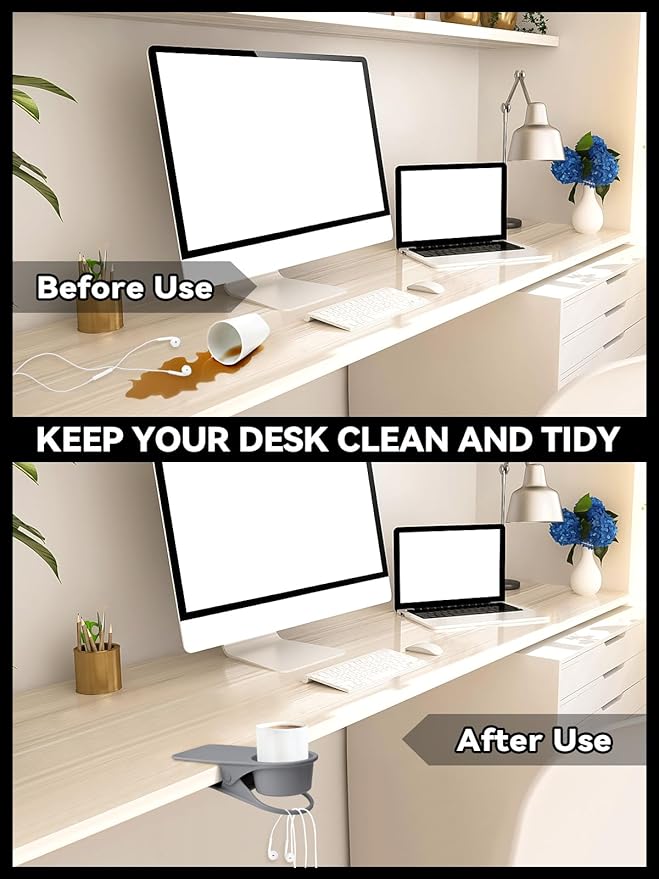 - Meeting Various Needs: This cup holder clamp has an opening of 3.3 inches and can bear 25 ounces (0.7 kg). It can be clamped on tables with a 0.25"~2.5" thickness, and is more suitable for thicker surfaces above 2". It is ideal for placing drinks, mobile phones, plants, etc. In addition, it can also be used in classrooms, game rooms, hospitals, and on buses and trains. It is your right-hand helper to keep your desktop tidy!