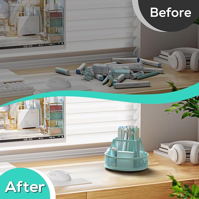- Convenient Pen Holder for Desk: The built-in rotating pencil holder (also serves as a pen holder) allows for easy access to your writing instruments. No more searching through drawers or clutter for that perfect pen or pencil. It's a must-have desk accessory & workspace organizer for any desk