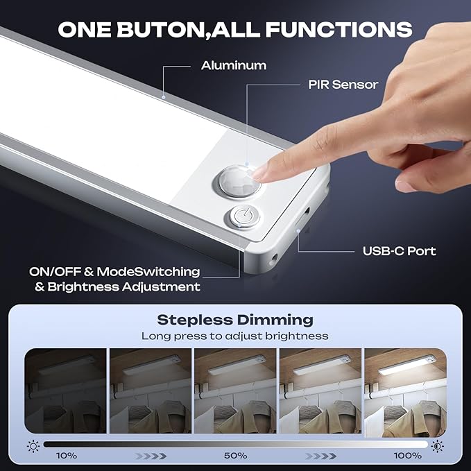- 【Super Large Battery Capacity】: Our under cabinet light is equipped with a powerful 2500mAh rechargeable battery,It can work continuously for 8 hours. With USB-C fast charging