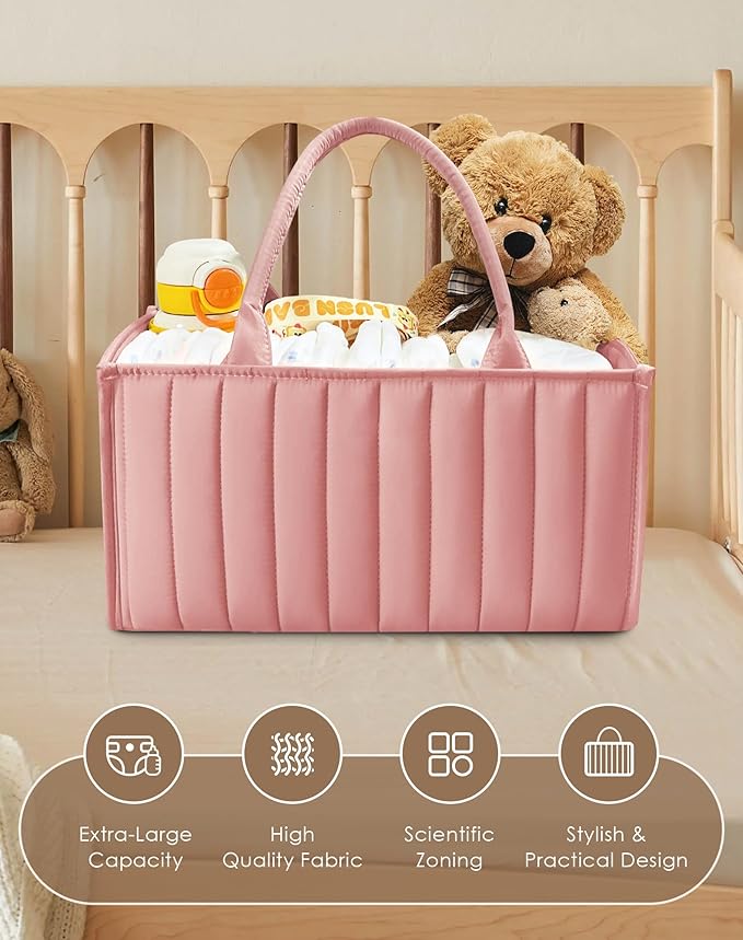SWEET DOLPHIN 2-Pack Baby Diaper Caddy Organizers, Stylish Storage Baskets for Newborn Essentials, Diaper Station & Car Travel, Value Bundle for Baby Shower Gifts & Registry Must-Haves - Dusky Pink