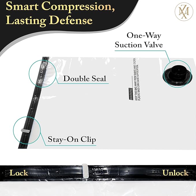 - AIRTIGHT DOUBLE-ZIP SEAL — Advanced leak-proof closure keeps out air, dust, moisture, and odors to maintain freshness during long-term storage.