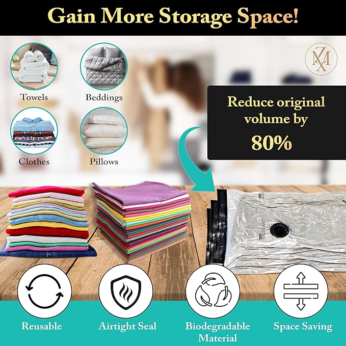 - SPACE SAVING — Compress bulky items such as blankets, comforters, coats, and pillows to free up to 80% more closet and storage space.