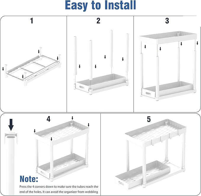 - 【2-Pack Anti-Slip Under Sink Organizers】Secure your space with 2 POUGNY cabinet organizers! Sized at 15” x 8” x 14.8”, our under sink storage fits perfectly around pipes, maximizing kitchen/bathroom cabinet storage without sliding.