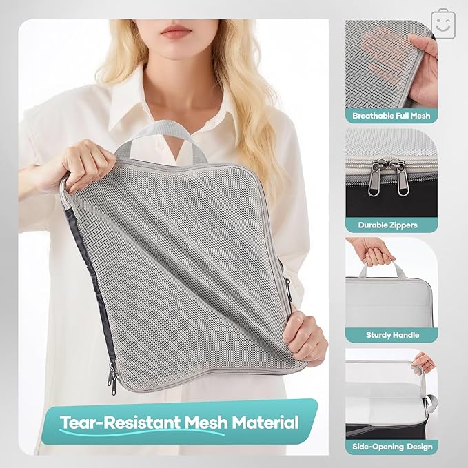 - Lightweight Yet Durable - Made of tear-resistant polyester and mesh with reinforced stitching for long-lasting use. The full transparent mesh panel allows easy identification, while dual zippers and side openings enable smooth packing and access.