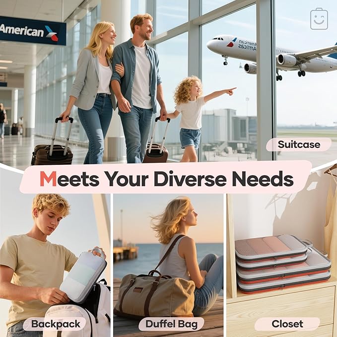 - Space-Saving Compression - Simply zip the compression zippers to reduce volume—no extra tools needed. Maximize luggage space efficiently, allowing you to pack more with less bulk for a lighter travel experience.