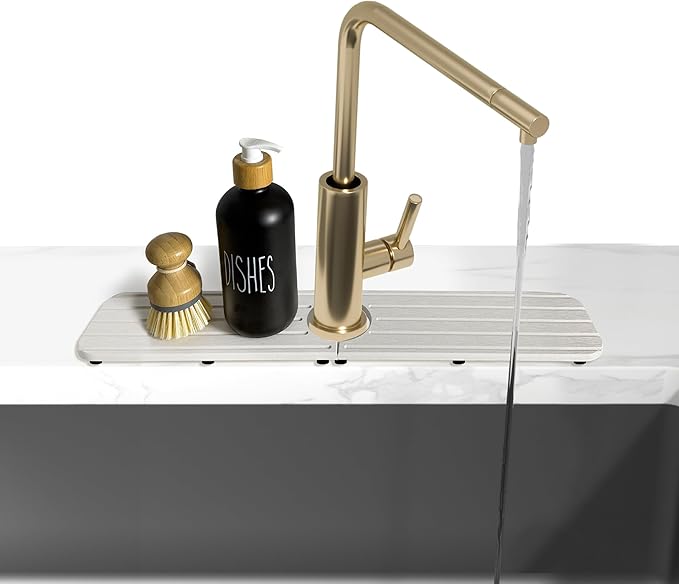- 2.【Absorbent & Fast-Dry】: Made of natural diatomaceous earth, this stone mat for kitchen sink absorb splashed water quickly and dries in minutes. Keeps your sink area dry and clean.