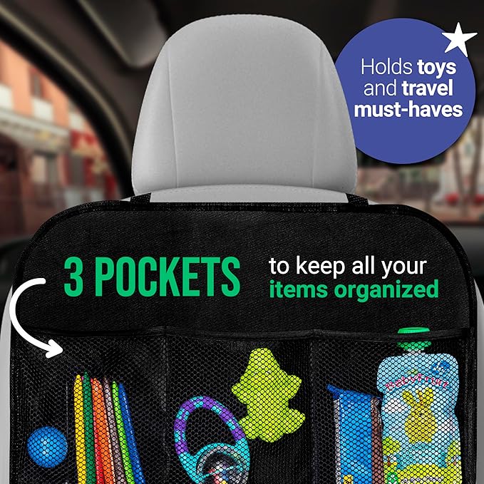 - 2-Pack Convenience - Includes two car seat organizers to cover both seats. Great for holding kids car accessories, this back of car seat organizer keeps everything tidy and close at hand.