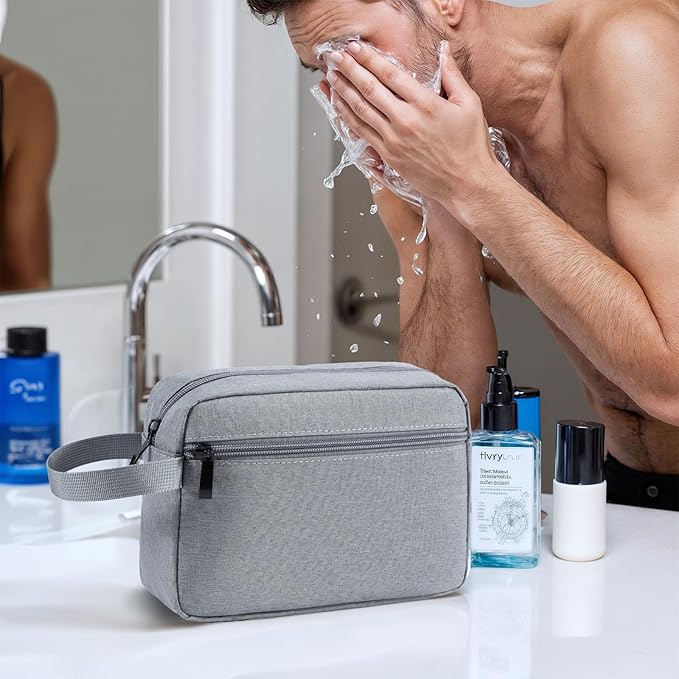 Travel Toiletry Bag, Small Cosmetic Bag, Hanging Water-Resistant Organizer for Men & Women, Ideal for Makeup, Shaving Kit, Gym Essentials & Travel Accessories (Grey)